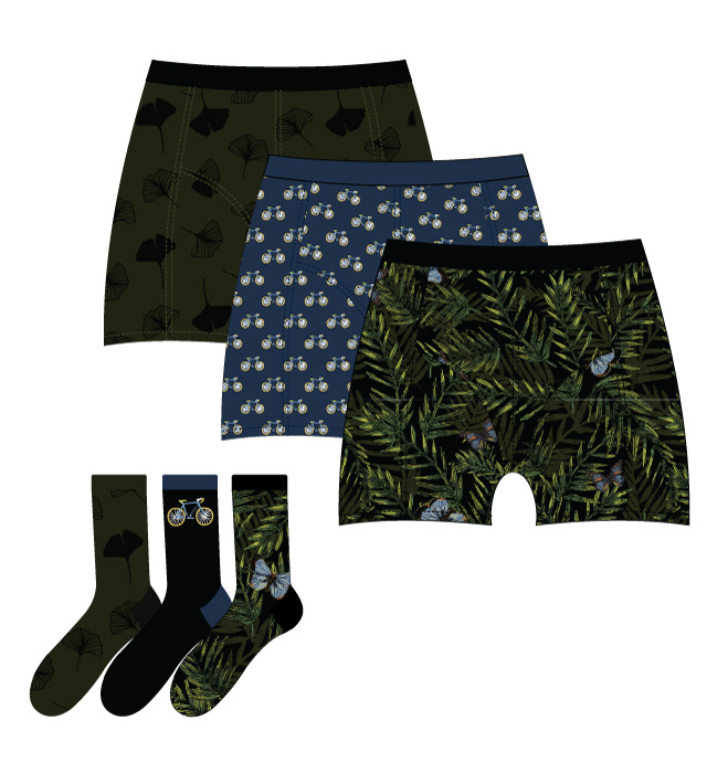 Design 3 printed boxershorts and 3 pack socks for a Dutch fashion brand. Winter 21/22.